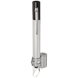 The Aven 26800C-550 pocket pen-type microscope has a magnification ability of 25X, with a 3.3 mm field of view (FOV), and built-in LED lighting for illumination. This microscope enhances object or image resolution, and is commonly used by hobbyists and professionals in the printing, engineering, dermatology, parts assembly, quality control (QC), collecting, printing, gemology, and entertainment industries. It is used in specimen examination in laboratories before sample preparation, and for printed circuit board inspection, especially for hairline cracks. This microscope is also used in the printing industry for “dot” measurement, and in gemstone examination.