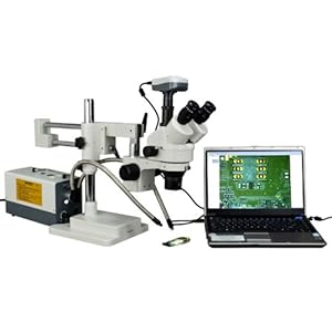 - 3488 x 2616 pixels (9.0MP) USB camera included, capture true color video or image on your computer; Compatible with Windows 2000/XP/Vista/Windows 7 32/64-bit; Heavy base and boom stand; 0.3X auxiliary objective lens for increasing working distance and field of view; 2X auxiliary objective lens for having higher power levels