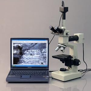AmScope 40X-1600X Metallurgical Microscope Two Lights + 5MP Camera